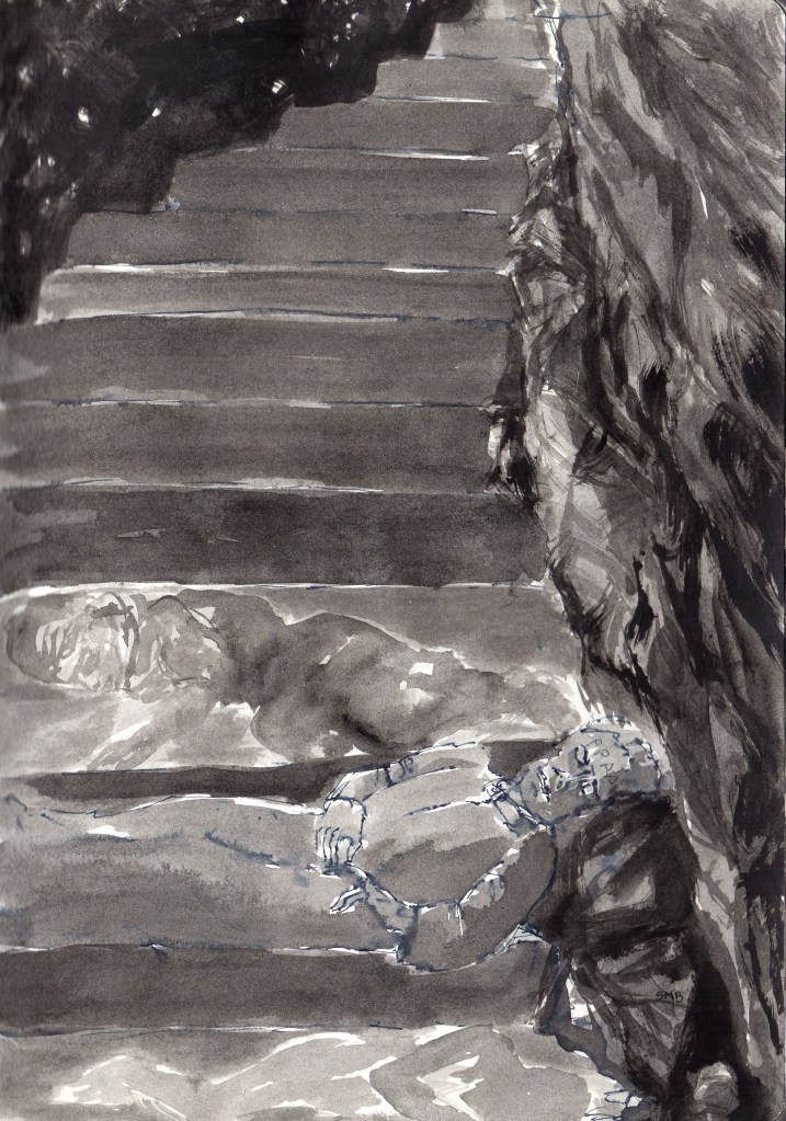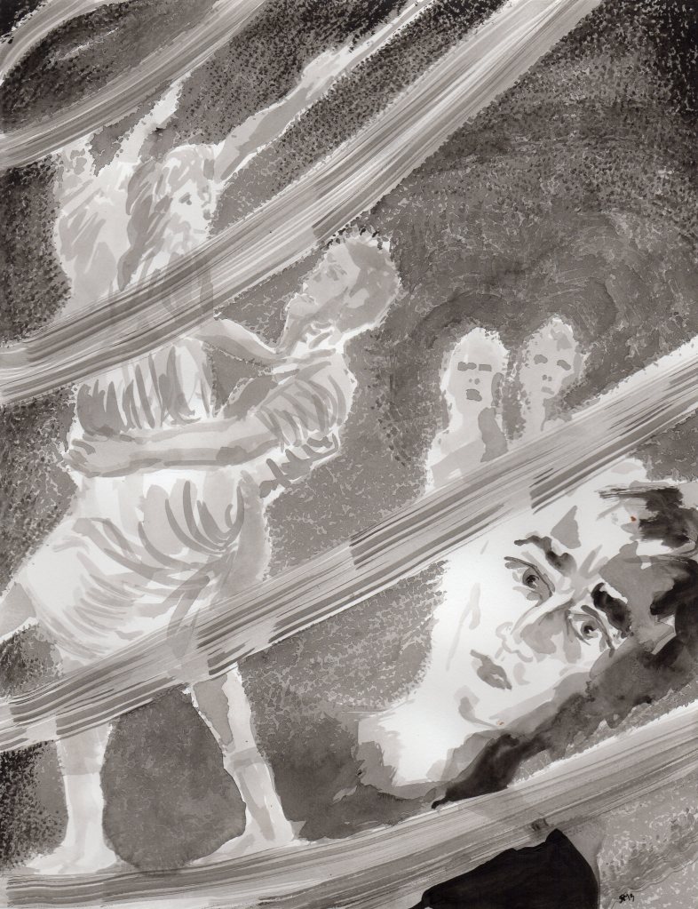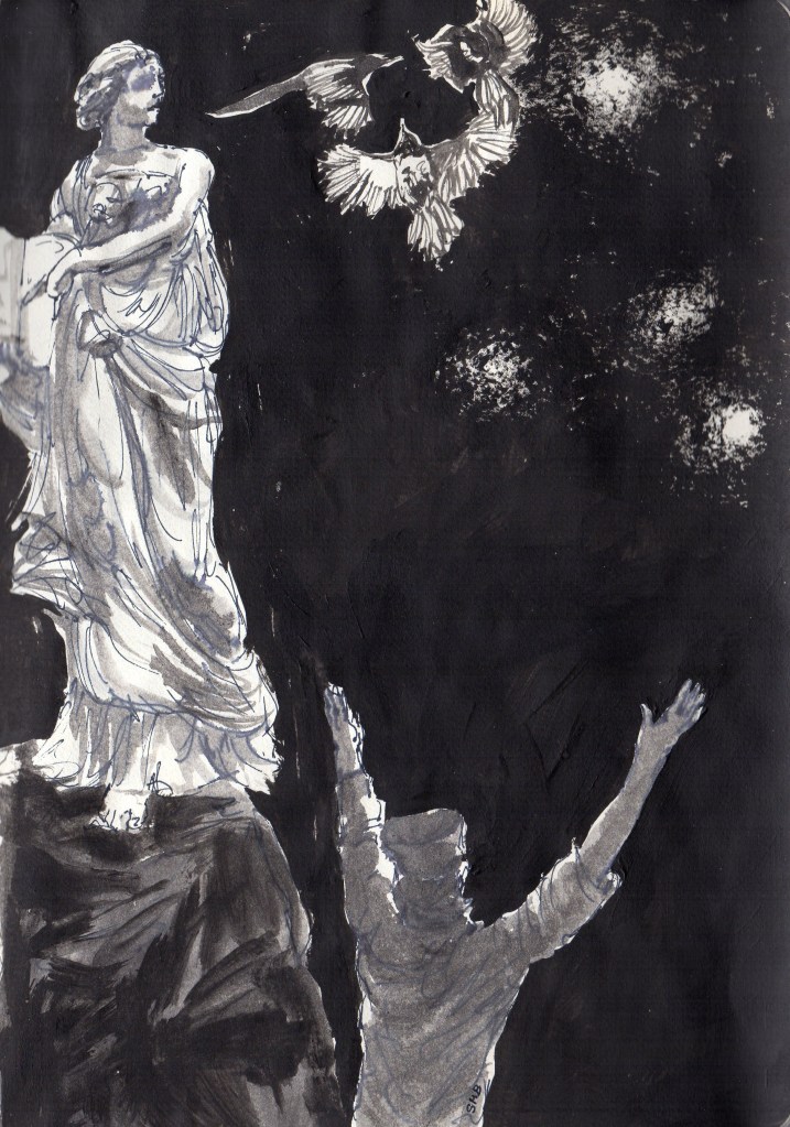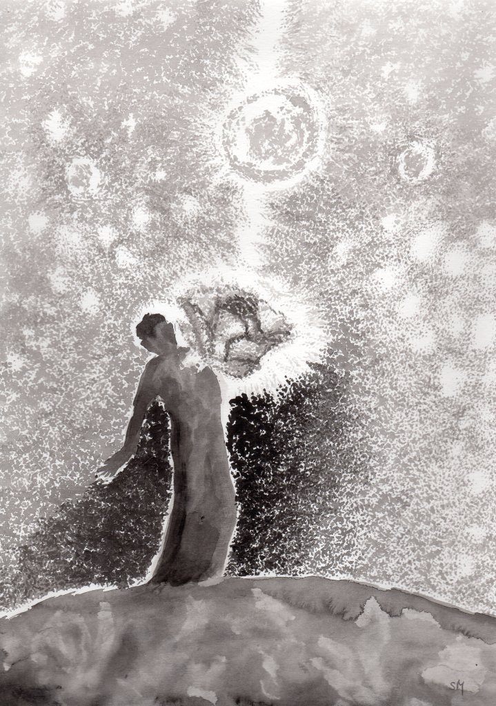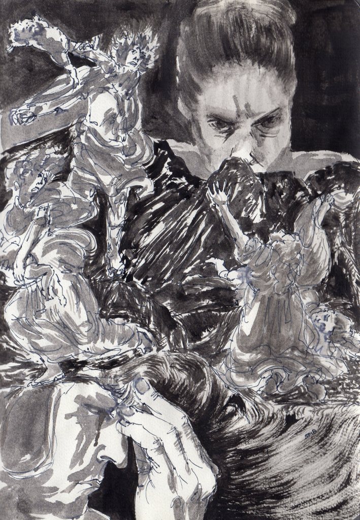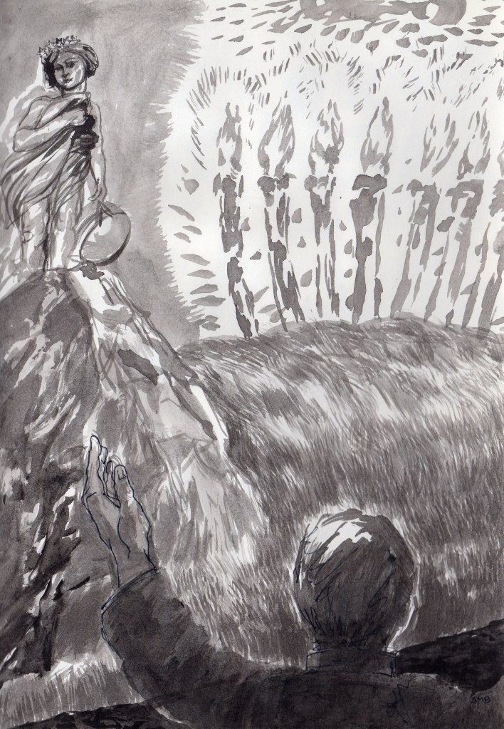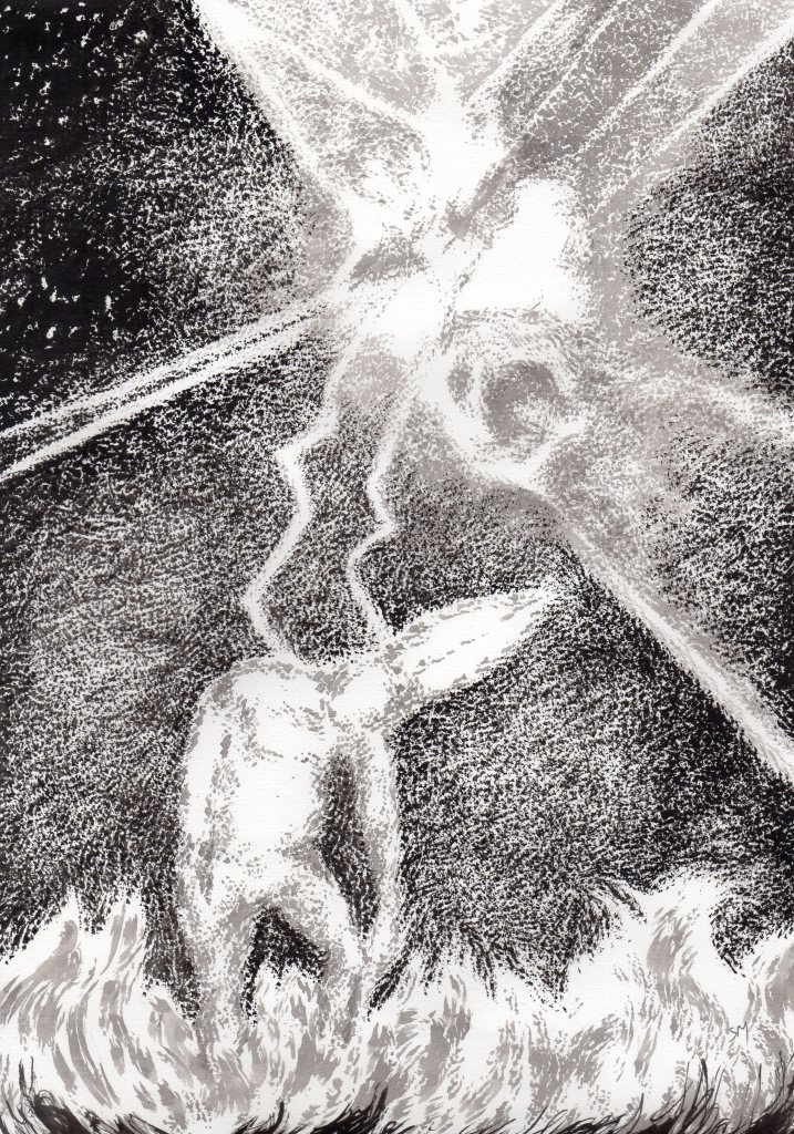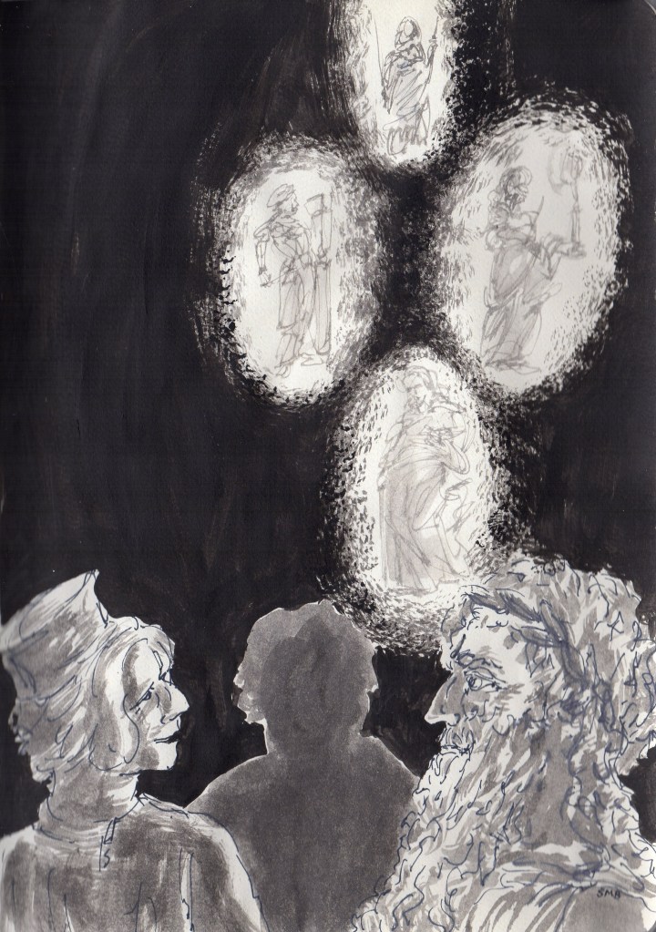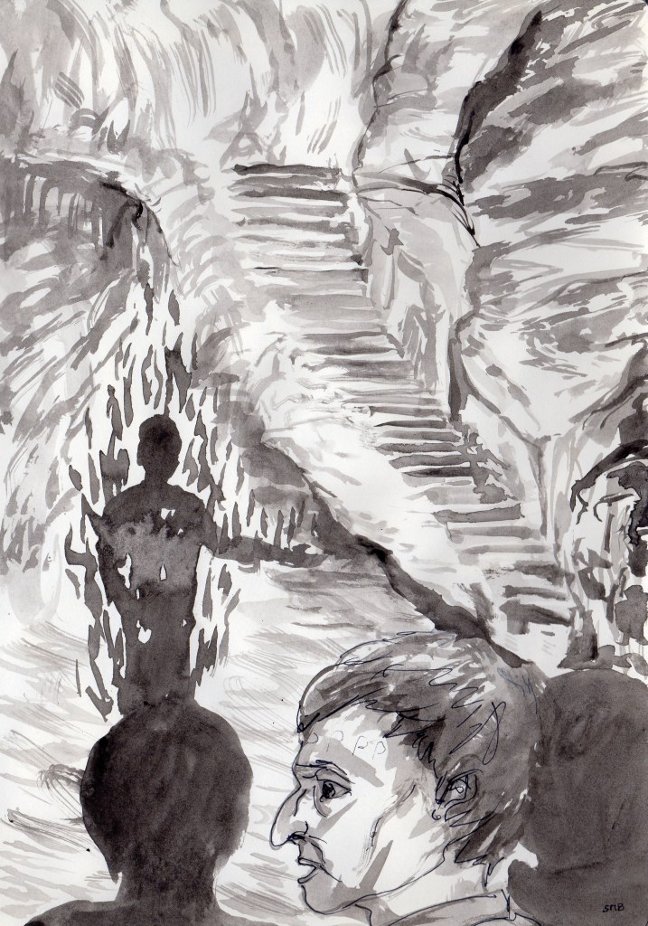 L’artiste chorégraphique Sophie Distefano évolue dans le public en lisant de manière aléatoire les premiers paragraphes des chants infernaux de la Divine Comédie de Dante. Sa déambulation musicale l’amène à mettre en valeur les différents cercles: