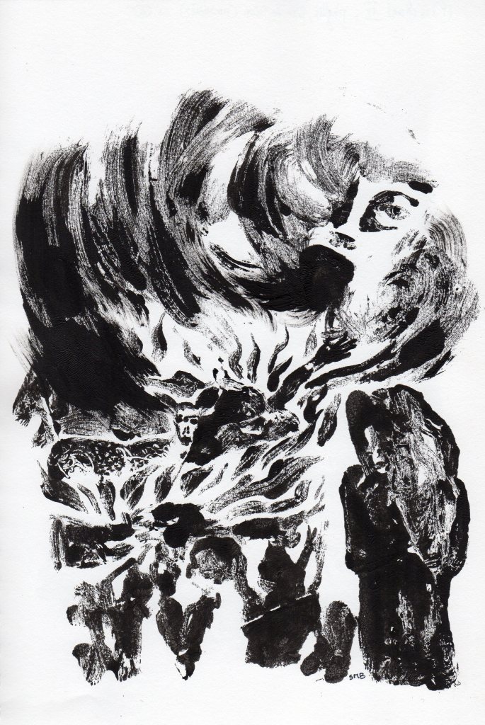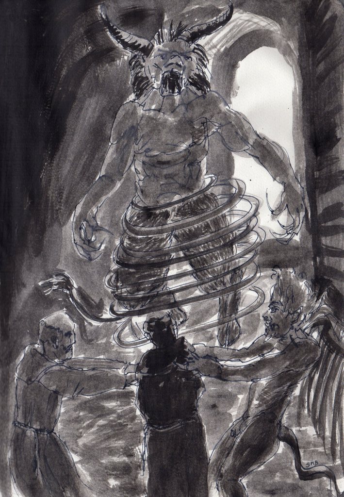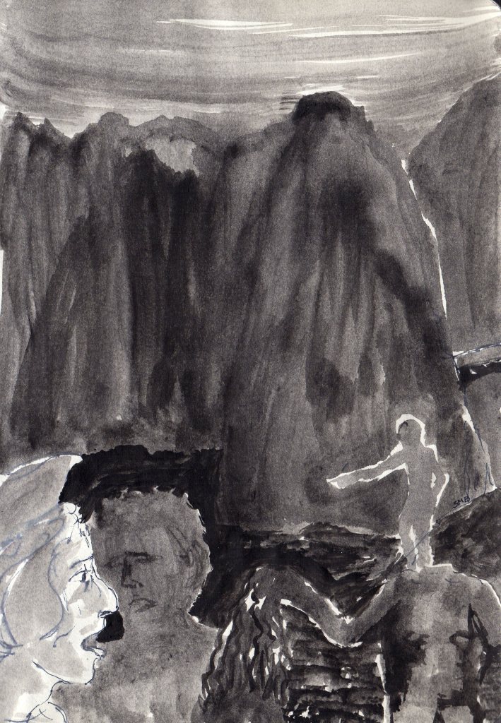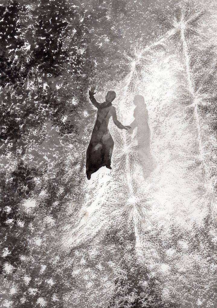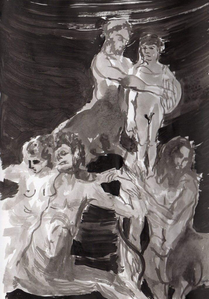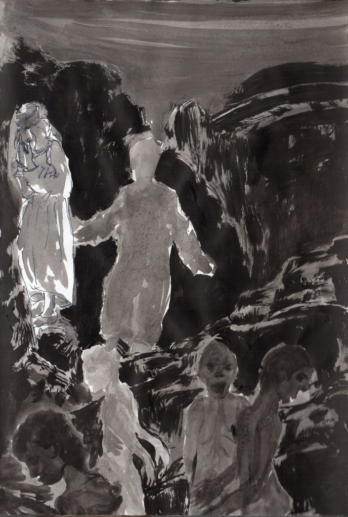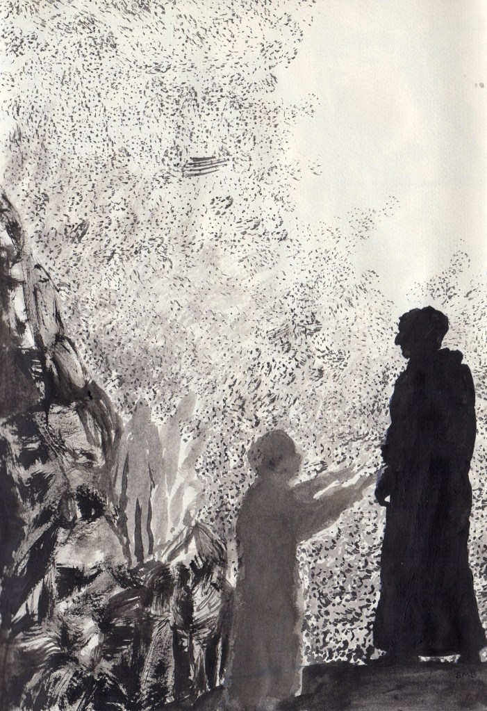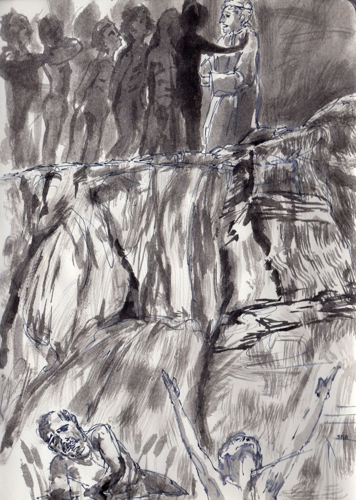 L’artiste chorégraphique Sophie Distefano évolue dans le public en lisant de manière aléatoire les premiers paragraphes des chants infernaux de la Divine Comédie de Dante. Sa déambulation musicale l’amène à mettre en valeur les différents cercles: