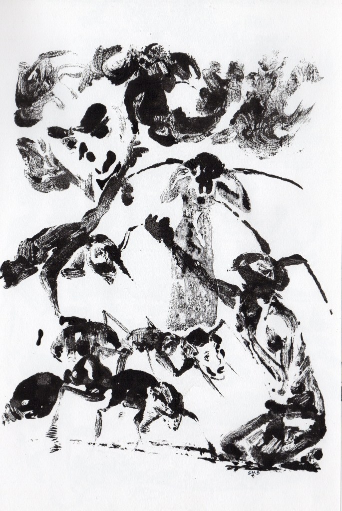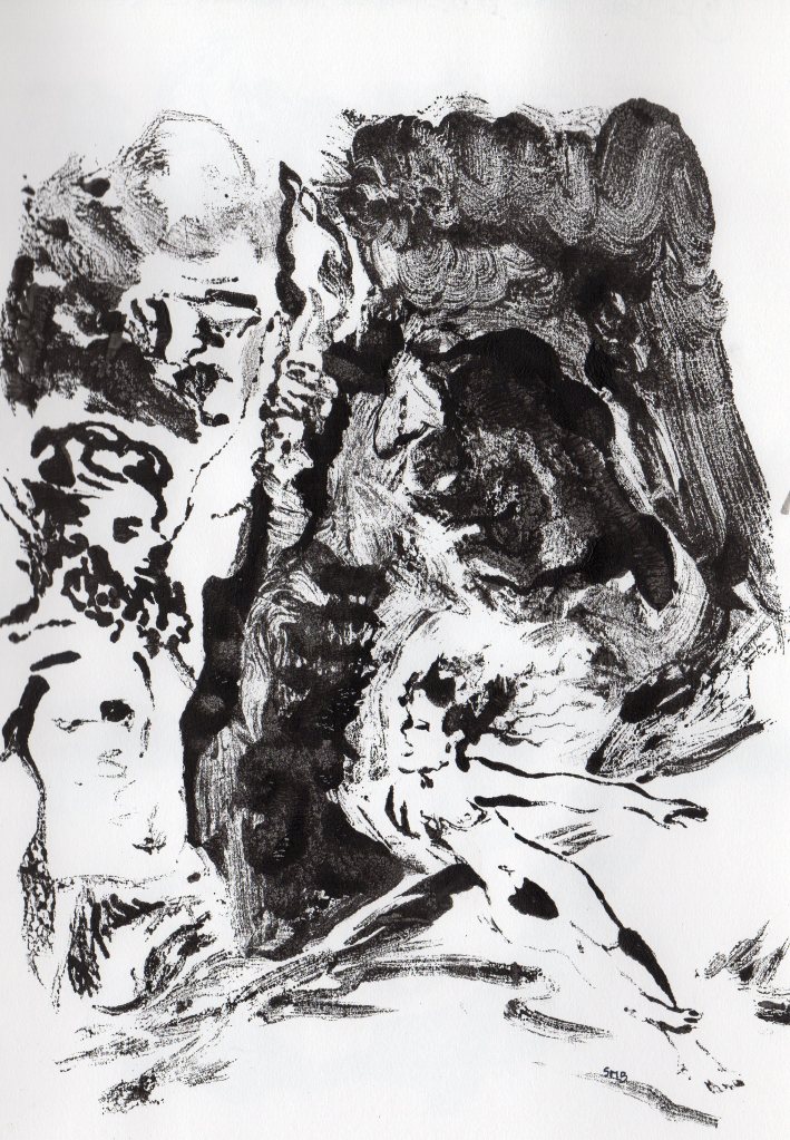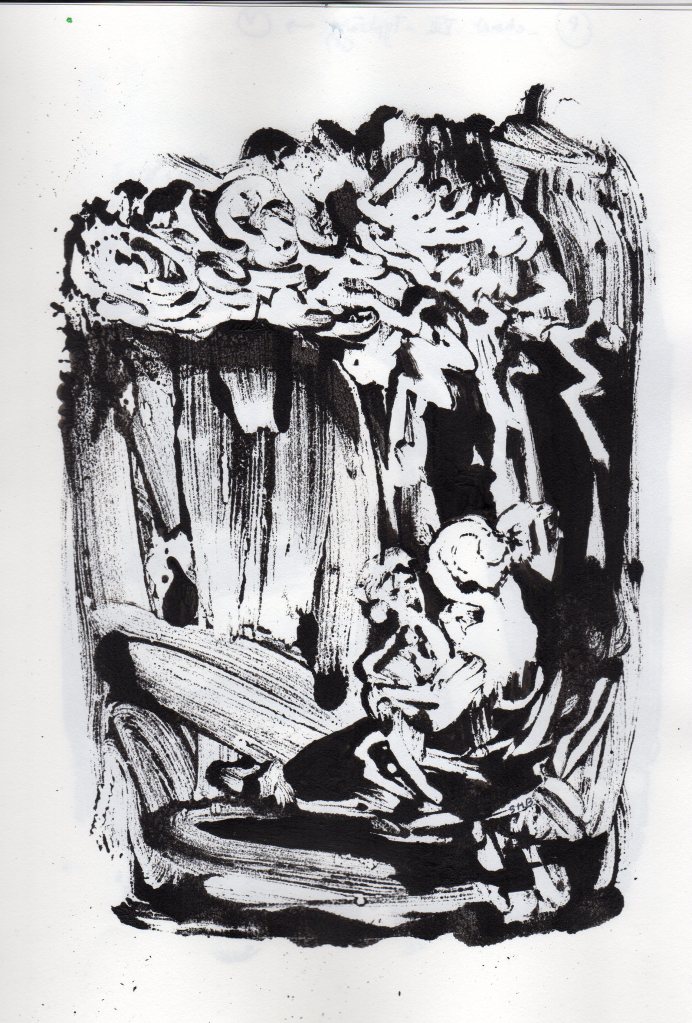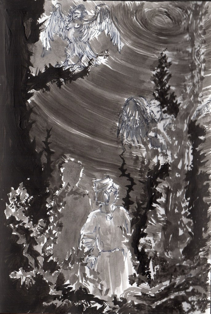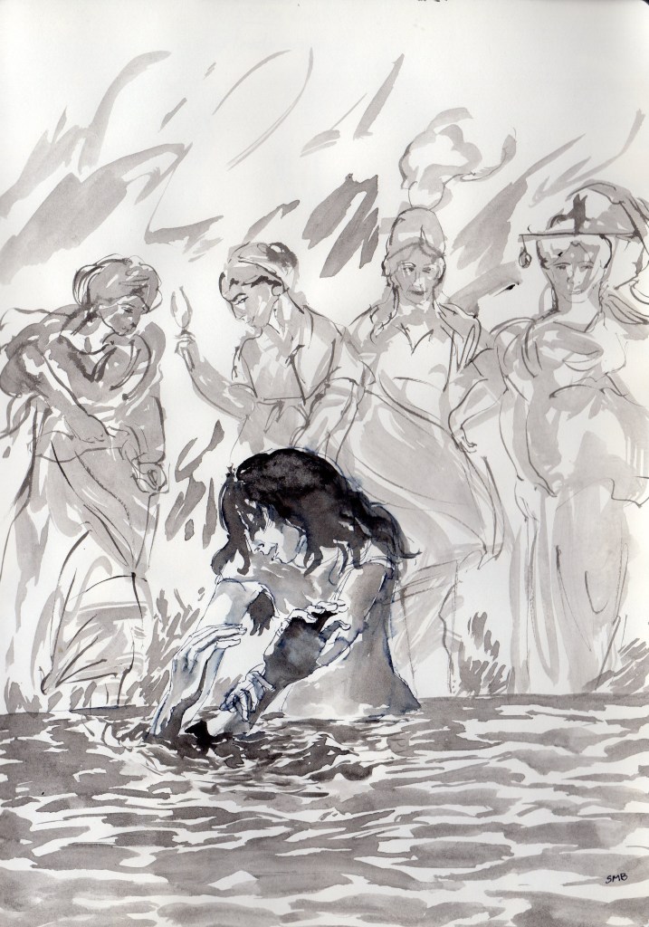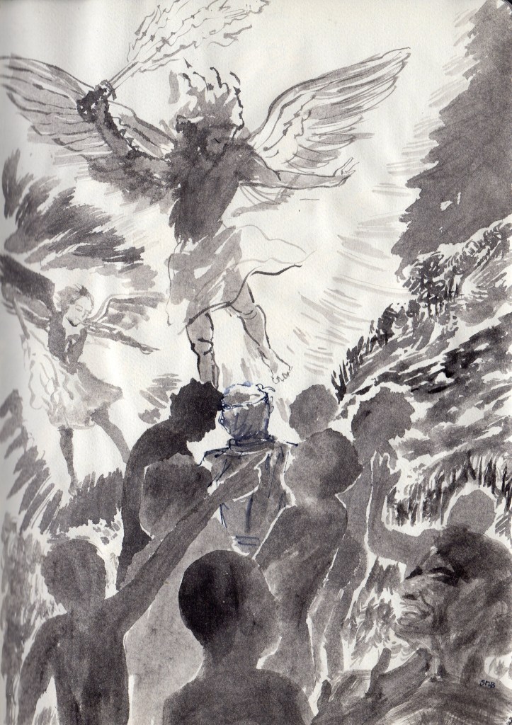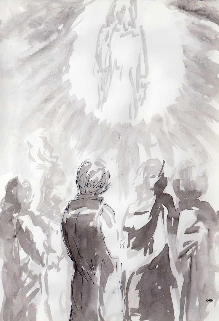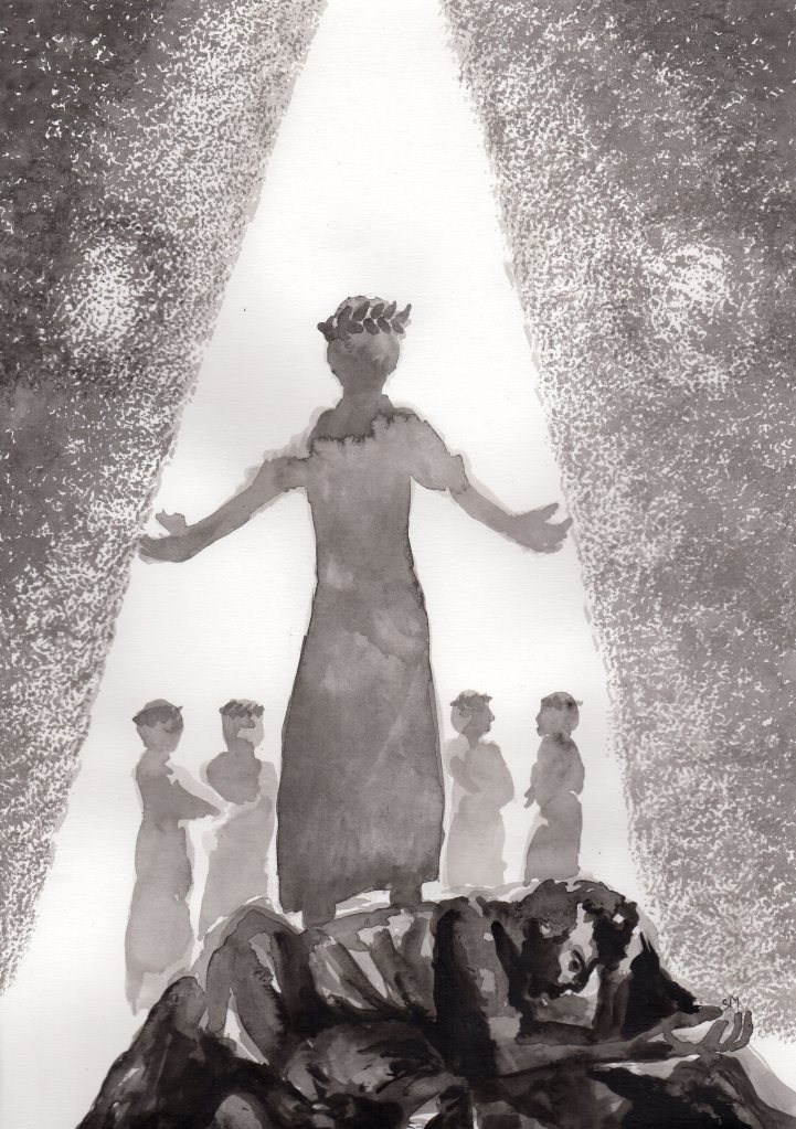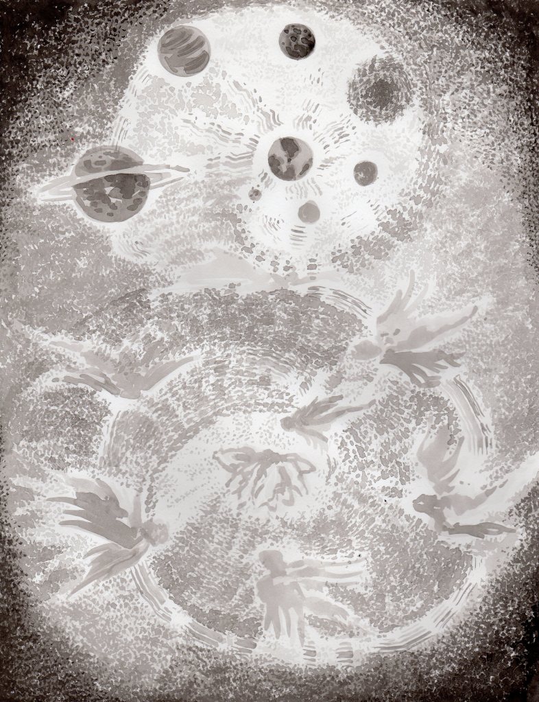 L’artiste chorégraphique Sophie Distefano évolue dans le public en lisant de manière aléatoire les premiers paragraphes des chants infernaux de la Divine Comédie de Dante. Sa déambulation musicale l’amène à mettre en valeur les différents cercles: