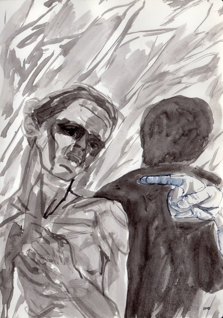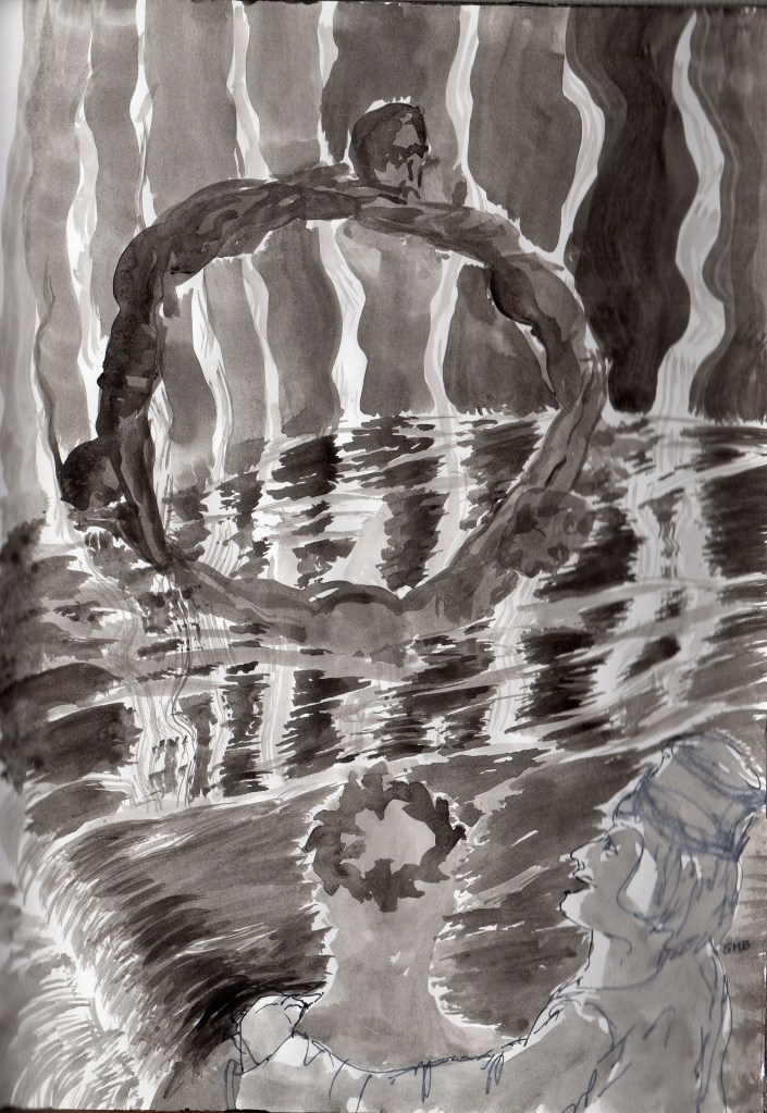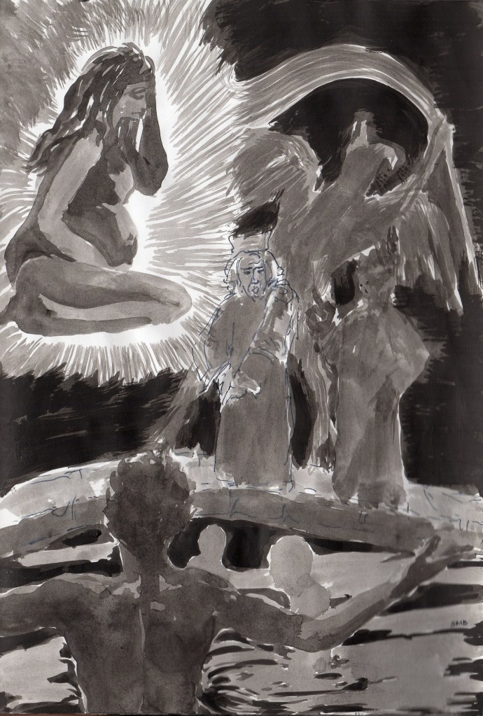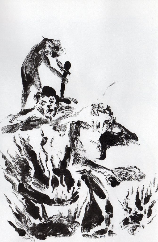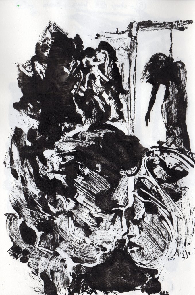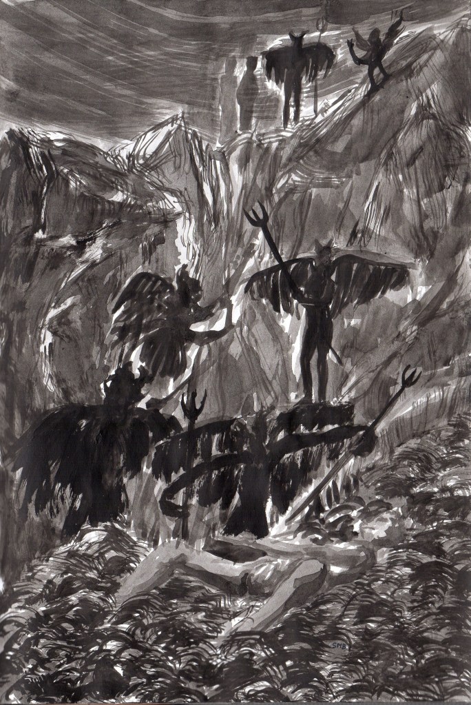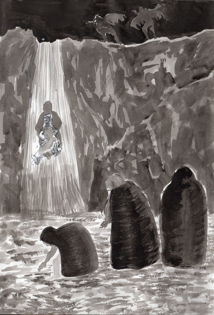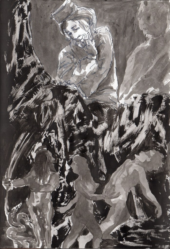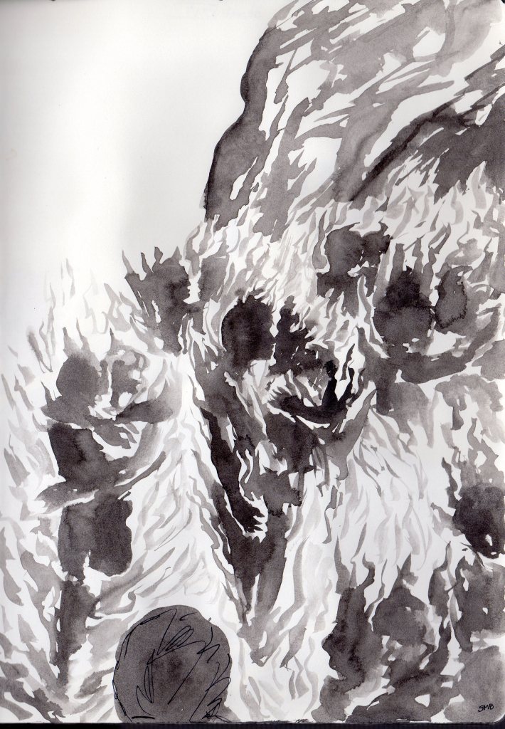 L’artiste chorégraphique Sophie Distefano évolue dans le public en lisant de manière aléatoire les premiers paragraphes des chants infernaux de la Divine Comédie de Dante. Sa déambulation musicale l’amène à mettre en valeur les différents cercles: