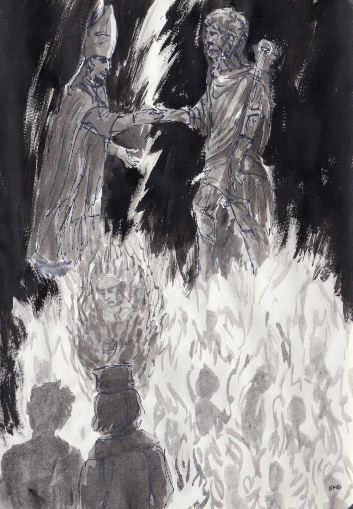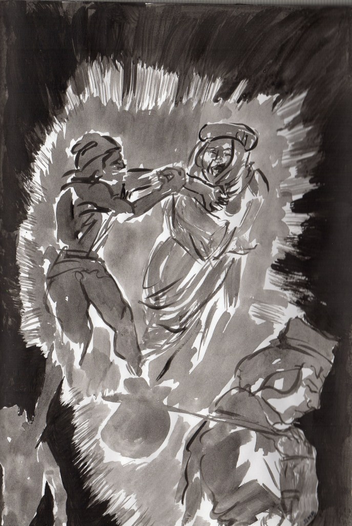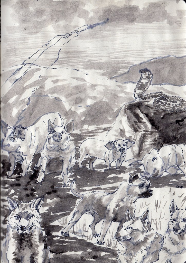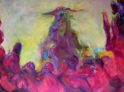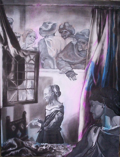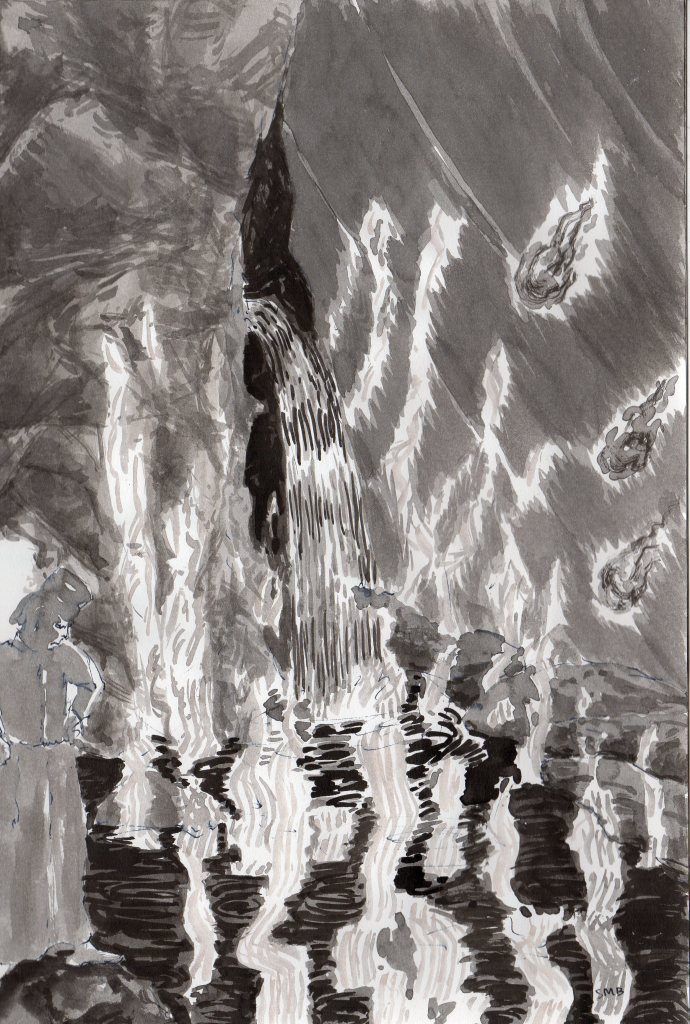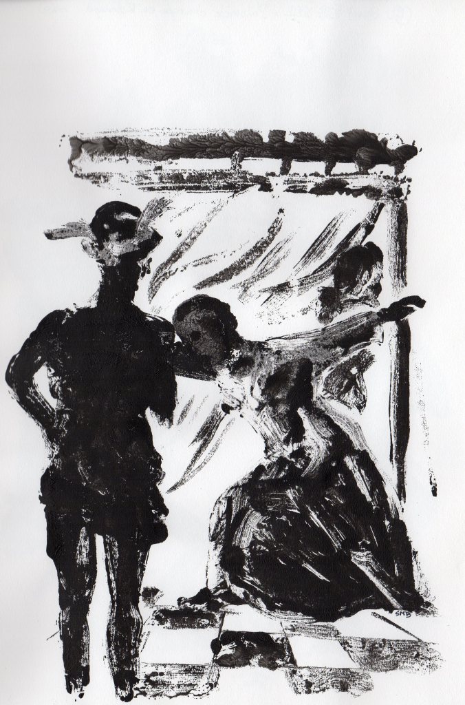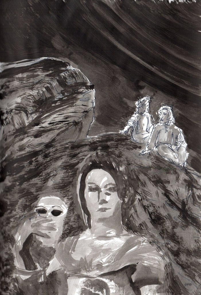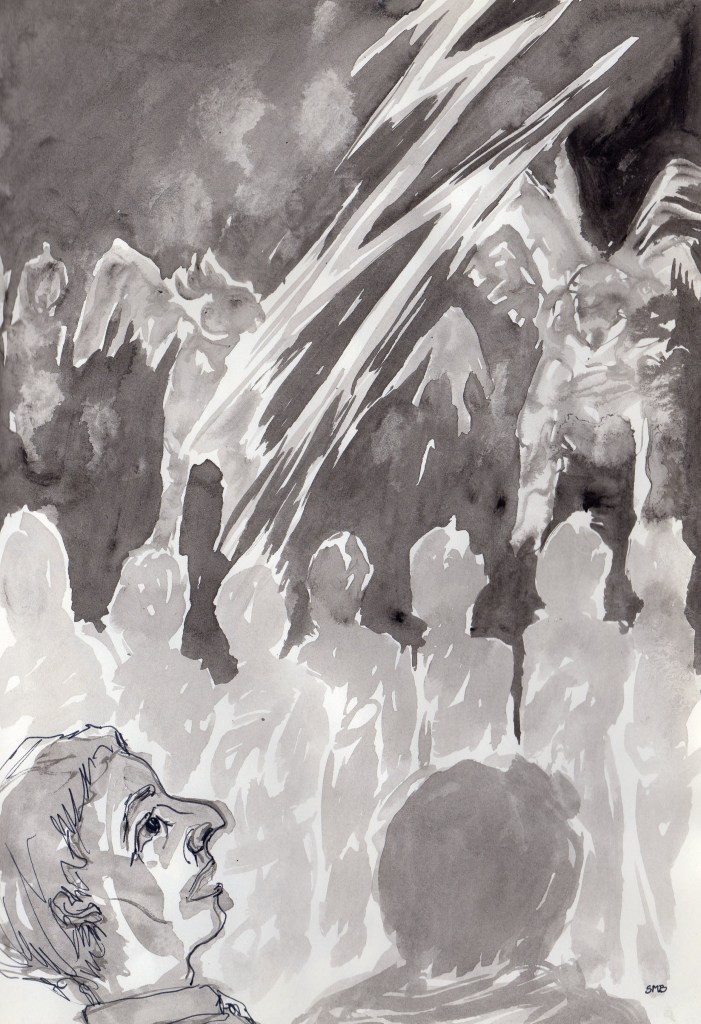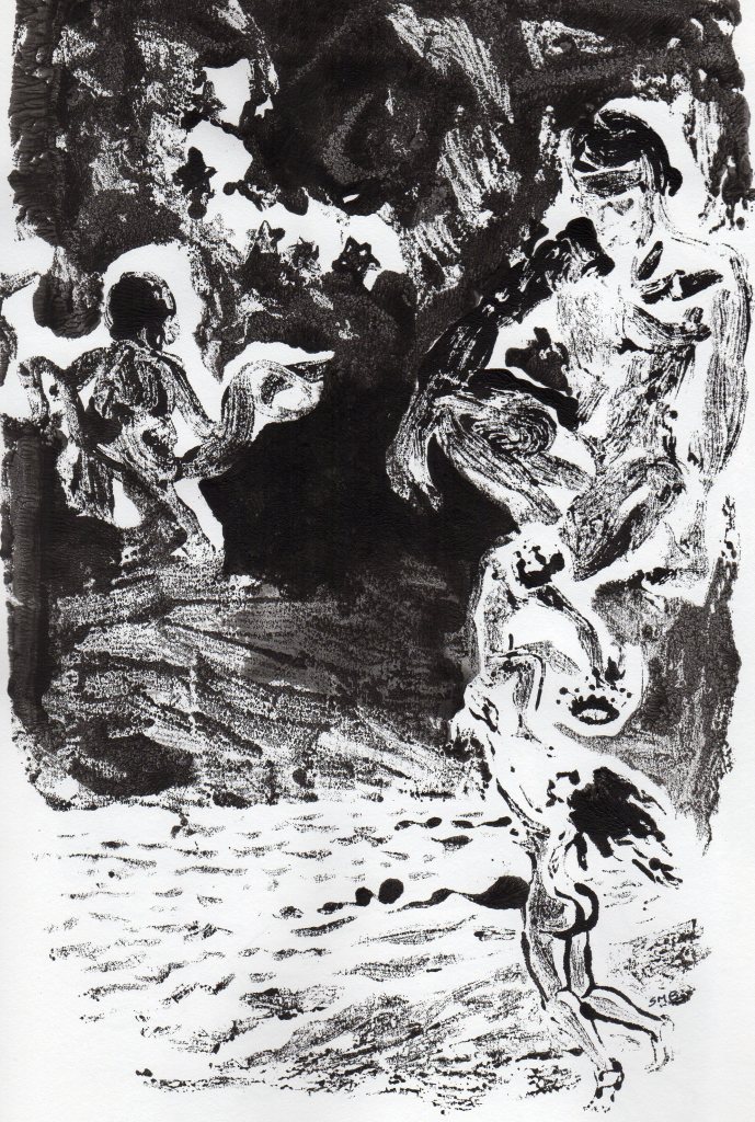 L’artiste chorégraphique Sophie Distefano évolue dans le public en lisant de manière aléatoire les premiers paragraphes des chants infernaux de la Divine Comédie de Dante. Sa déambulation musicale l’amène à mettre en valeur les différents cercles: