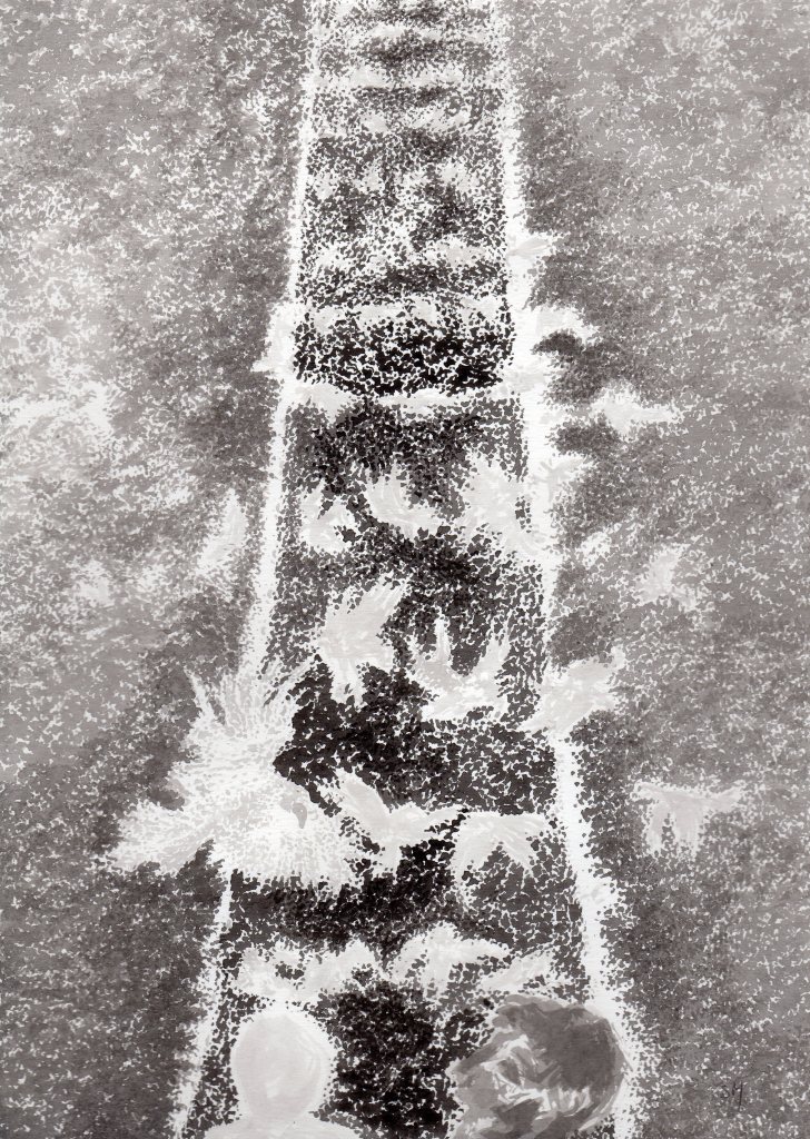 La seconde concerne l’être humain qui dort et qui rêve, échappant en apparence à ce conditionnement. Les mémoires collectives et individuelles sont étroitement liées aux institutions, aux lieux, aux images et aux émotions (en lien avec nos sens) ; d’autres questions se posent alors. Peut-on changer les lieux de mémoire, peut-on changer les images, pour autrement se souvenir ? Se souvenir implique nécessairement un concept opposé et complémentaire : l’oubli. Comment autrement oublier, en particulier dans notre société systémique et numérique d’hypertrophie des mémoires collectives et individuelles ? Le rêve et l’éveil, le souvenir et l’oubli sont deux paires élémentaires dans la construction de ma pensée, incarnées dans les prochaines œuvres plastiques qui seront aussi en lien avec les émaux cristallisés, travail technique amorcé avec mon art de la mémoire 3.0, en 2021.