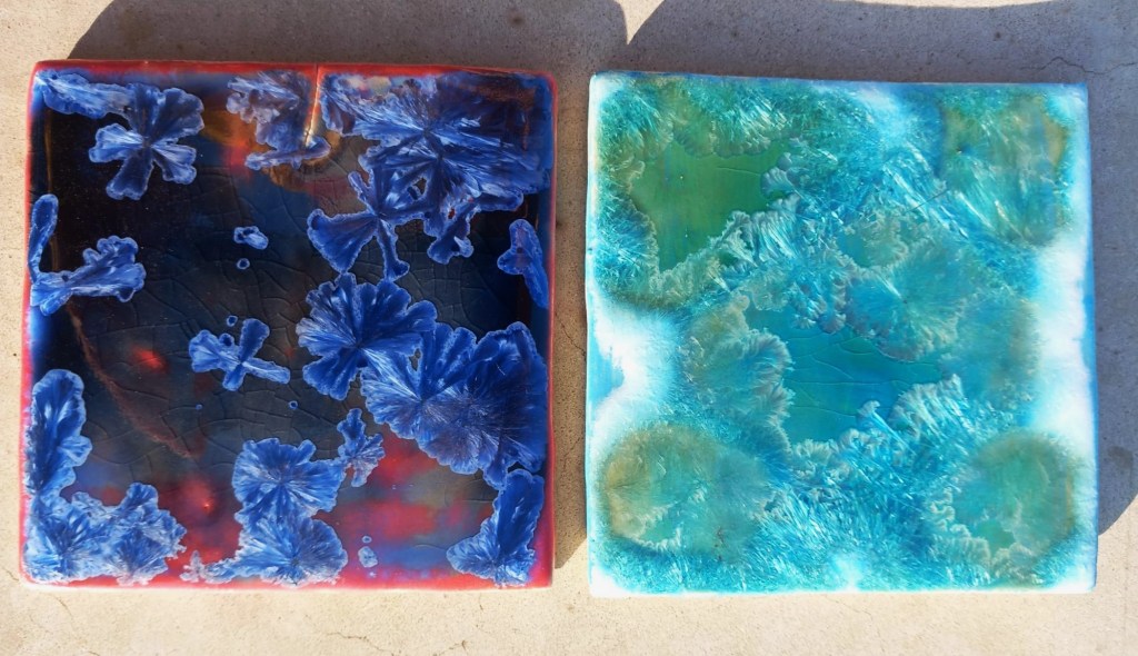 La compréhension du fonctionnement des oxydes métalliques qui intéragissent et qui cristallisent (certains resurgissent à la surface-souvenir tandis que d’autres tombent dans le fond-oubli) est une approche pour trouver des réponses plastiques à mon art de la mémoire 4.0. C’est le premier objectif de ma résidence pluridisciplinaire, labellisée pour le Millénaire de la ville de Caen, au laboratoire CRISMAT (ENSICAEN, UNICAEN, CNRS). Le deuxième objectif est de trouver d’autres matériaux-réceptacles que les grès/porcelaines pour l’émail cristallisé (études du comportement des déchets industriels à haute température). Le troisième objectif est l’étude des propriétés thermiques des émaux cristallisés, pouvant capter l‘énergie solaire et la restituer à l’intérieur d’un bâtiment.