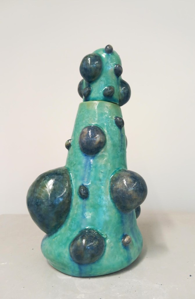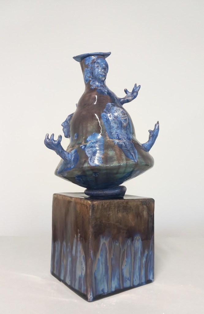 Unitas Multiplex/ grès et émail cristallisé aux oxydes de rutile, manganèse et cuivre. Hauteur : 27 cm/ 2024