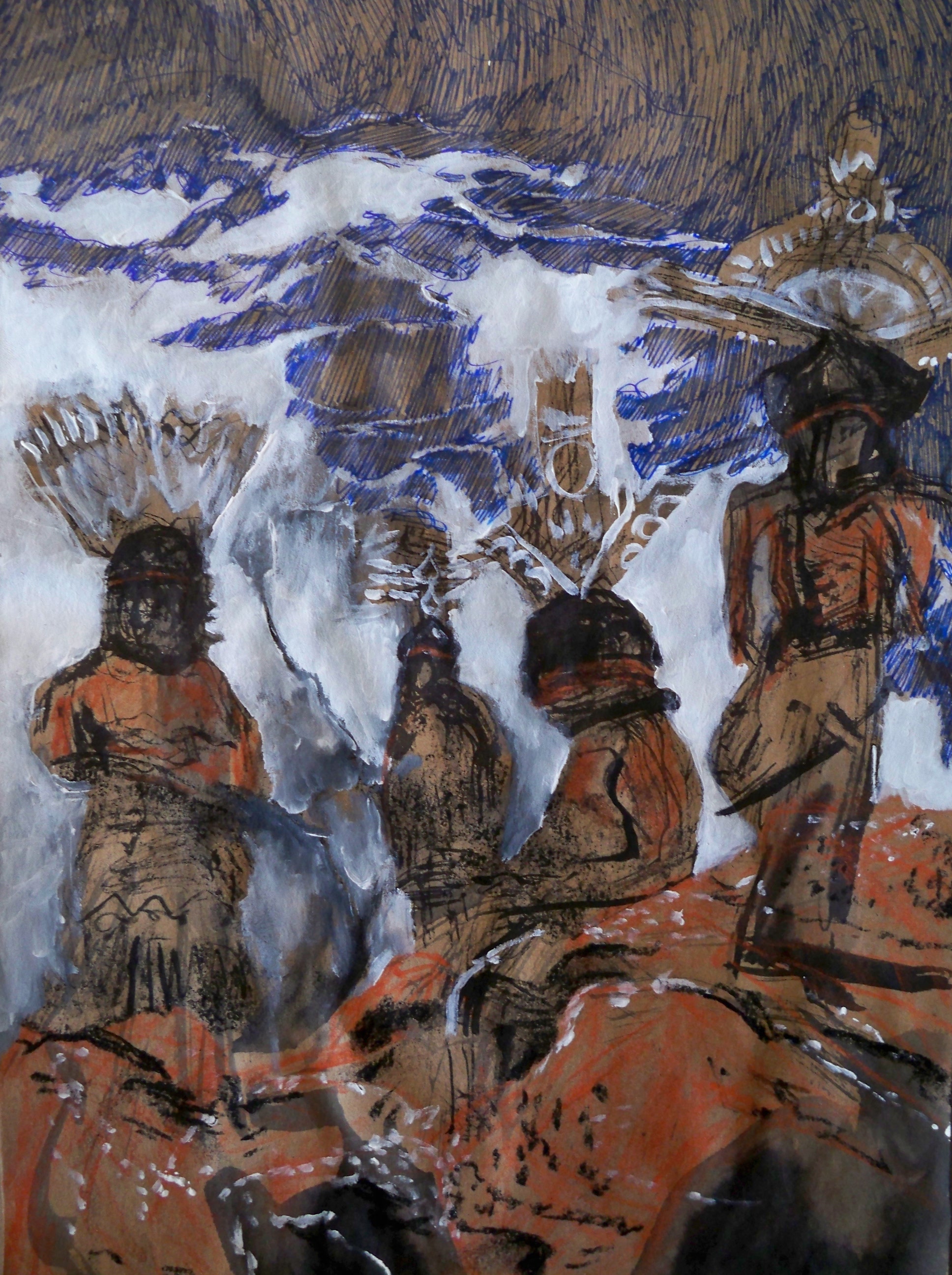 Du pouvoir tellurique des ocres d’Arizona (USA), résultats picturaux d’un voyage de trois mois en terre Hopi. L’histoire se confronte avec la réalité du rêve américain. Les rêves fourmillent de rencontres chamaniques…