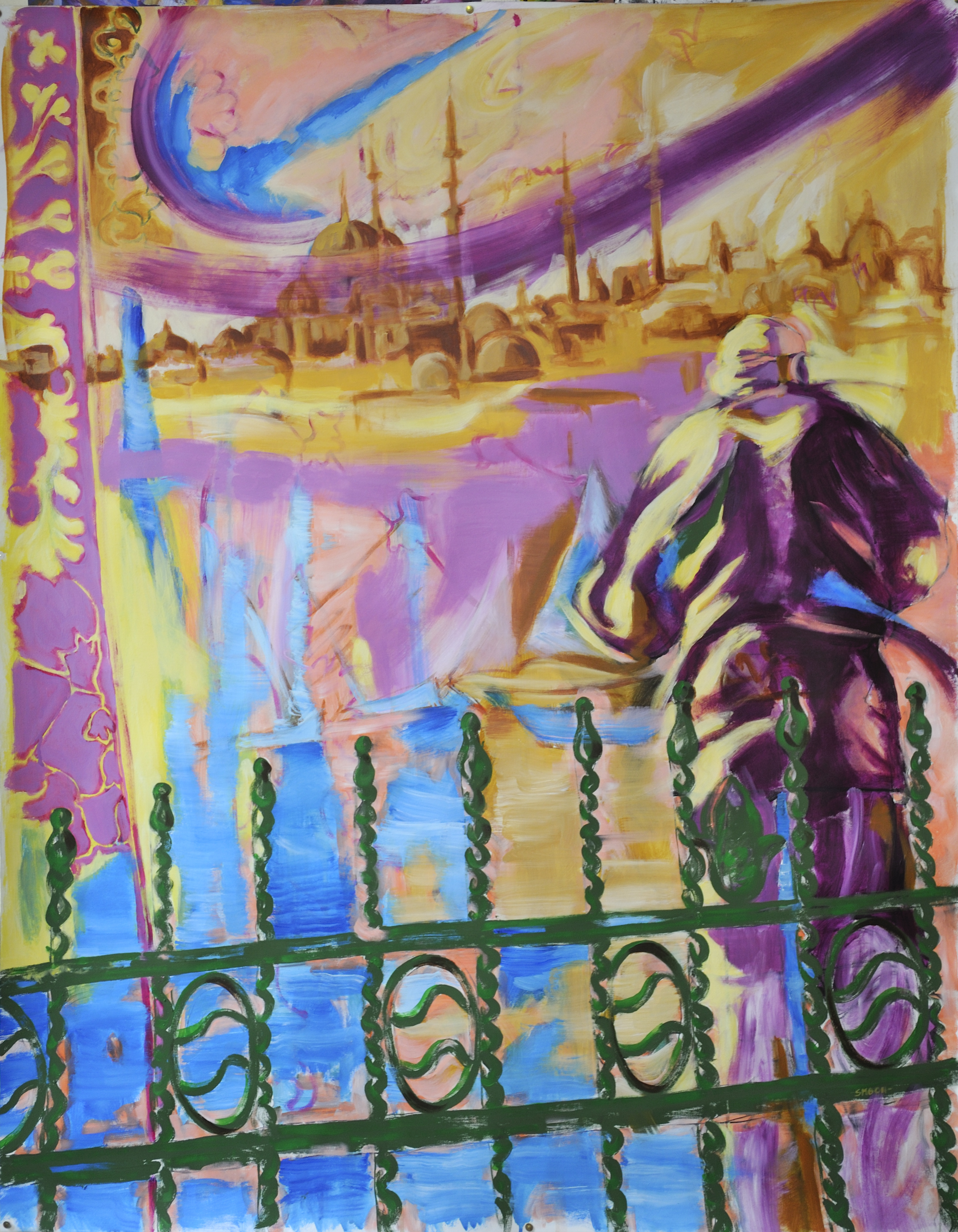 Un mois passé à arpenter la ville d’Istanbul : marcher, s’arrêter, dessiner, boire des cafés, marcher, beaucoup discuter, jouer au backgammon, dessiner, marcher… de la colline de Pierre Loti à celle d’Orhan Pamuk, de Fatih à Uskudar; entre les souvenirs byzantins et la réalité sévère, entre l’Asie et l’Europe… des œuvres peintes à mon retour en Normandie, au pied du phare, telles des engrammes.
